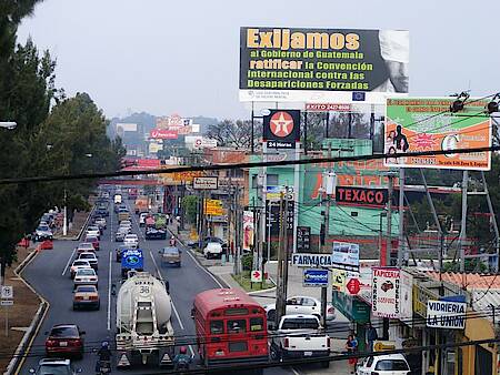 - Campaigning poster in Guatemala city. 'We demand from the Guatemalan government that it ratifies the convention'. 60.000 cars pass every day.